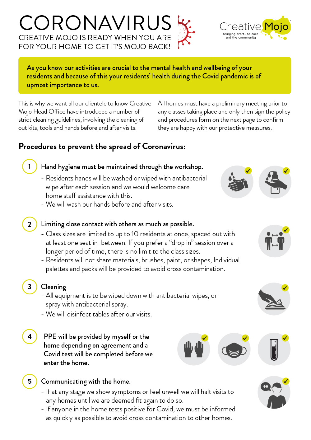 As you know our activities are crucial to the mental health and wellbeing of your residents and because of this your residents’ health during the current Coronavirus outbreak is of upmost importance to us.