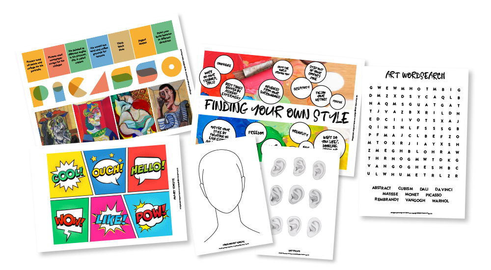 This fun 20 page full colour printed Your Face Your Way activity pack contains a Design your own face section, how to paint like Warhol & Picasso, then use all the content within to design your very own abstract or pop art piece of art. Also includes a quiz, word searches and word game.